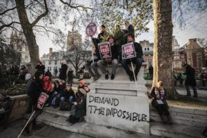 1968’lerde teknoloji karşıtı başkaldırılardaki slogan “Gerçekçi ol, İmkansızı İste”, zamanın işletmecilik yanlısı duruşuna karşı bir şiardı. Bunu yazarken,  Washington DC’deki “anti-kapitalist” gösterileri haber yaparken BBC’nin kullandığı ağırbaşlı tonu duymak içimi ısıtıyor. Bu bir şiar ama yine de değişim için yapılan bir strateji değil.